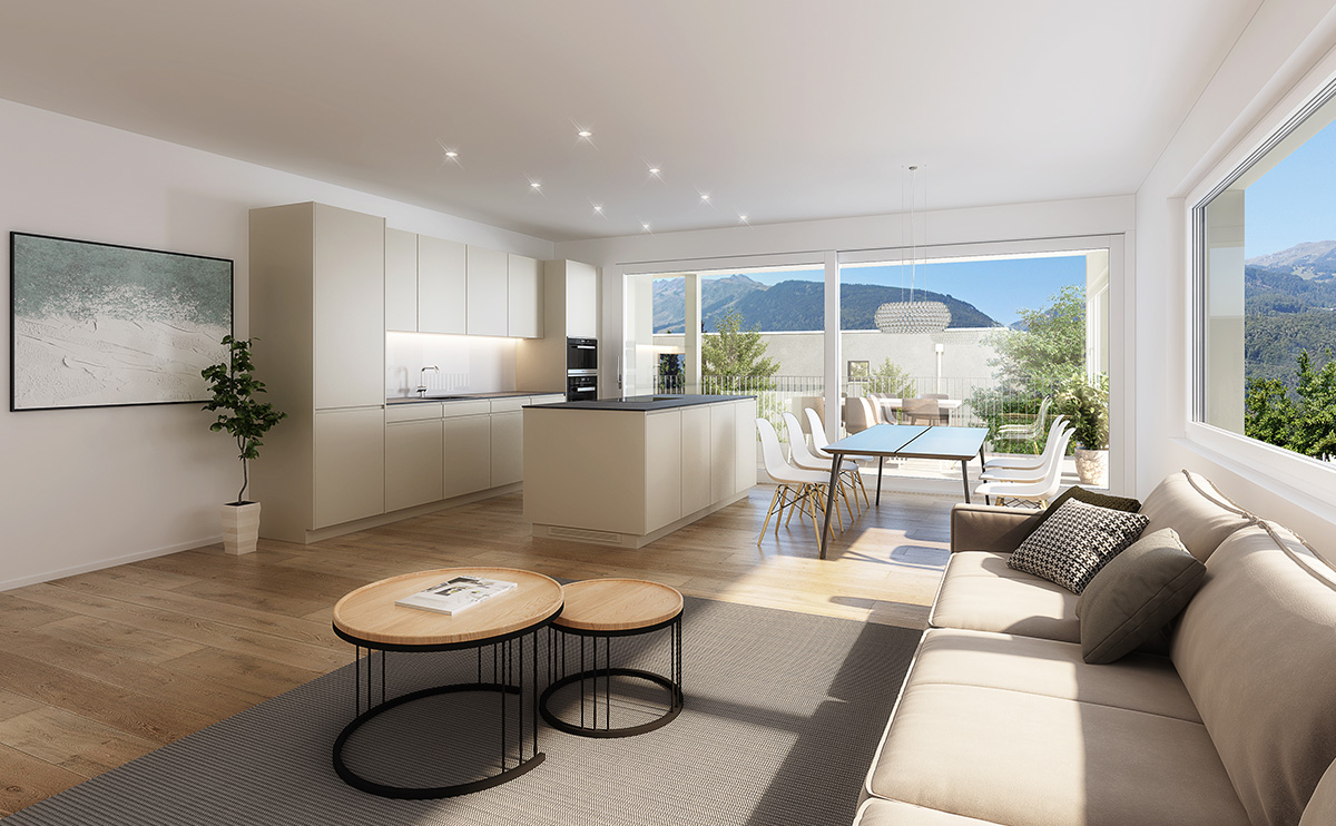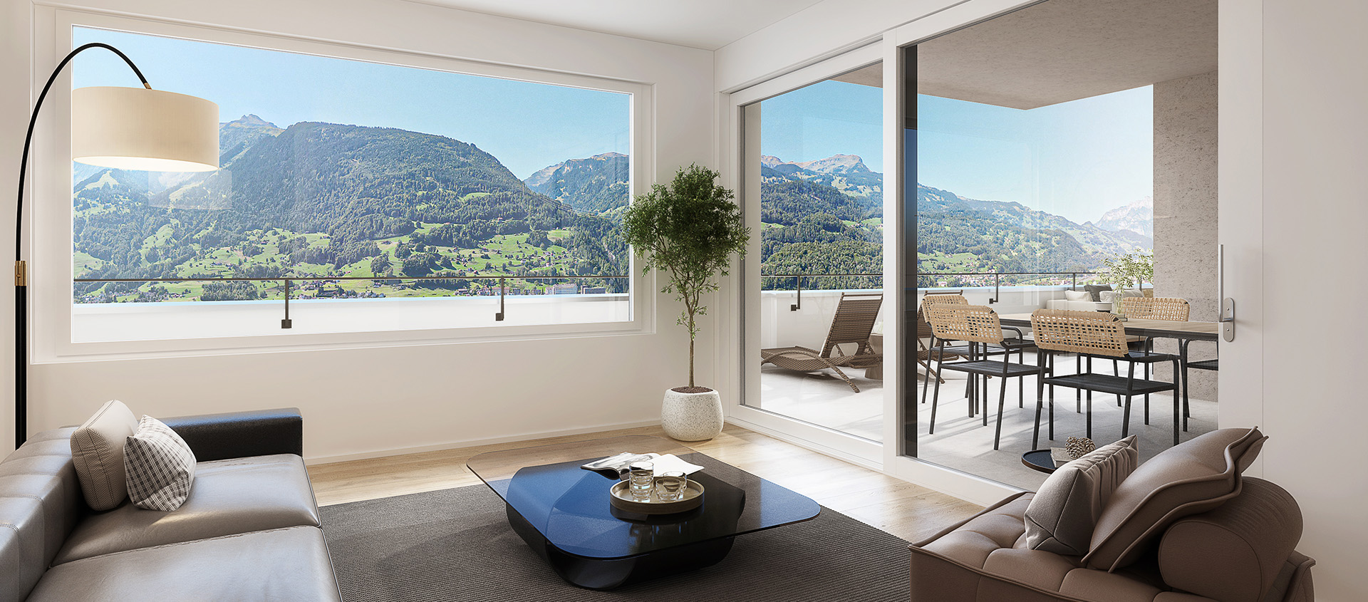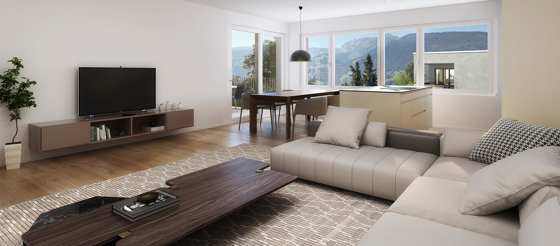 Die sorgfältig ausgewählte Ausstattung mit hochwertigen Materialien überzeugt auf den ersten Blick. Bei genauerem Hinsehen bietet das Wohnen im Pizolblick viele weitere Vorzüge. Zudem ermöglichen Änderungen an der Ausstattung eine individuelle Anpassung an Ihre persönlichen Wohn(t)räume.